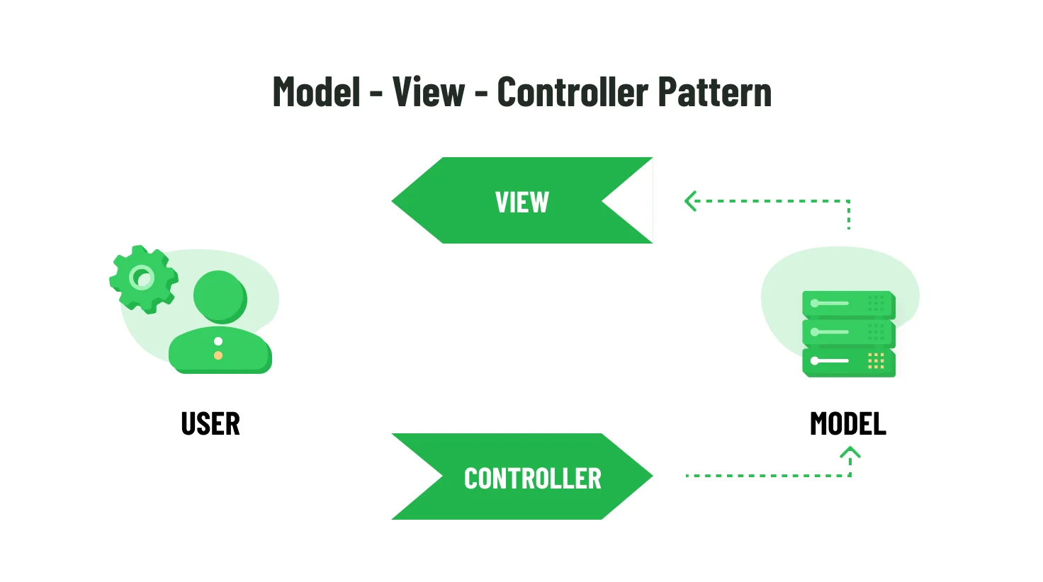 The diagram below summarizes responsibility boundaries across Model, View, and Controller, as well as the typical request-response interaction between them.